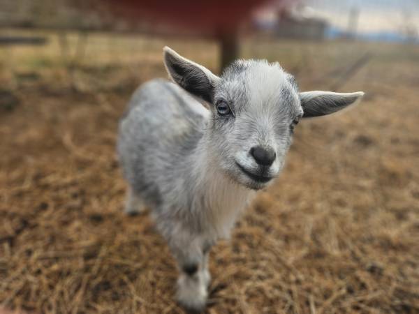 Ferdinand and Izabella are two beautiful kids. They were borne November 23 2025. They were 2.5 and 2.7 pounds at birth they were healthy and active. Their mom came to us unexpectedly pregnant, so we can not say for sure who the father is. Their mother is polled, and we believe that they are as well. They are both extremely friendly and love pets, treats, and they follow you around. They lived with a calf for a while and loved her. They have been dewormed and treated for coccidia with corid. The buckling has not been castrated yet because of his beautiful coloring, but I can band him for no extra fee.